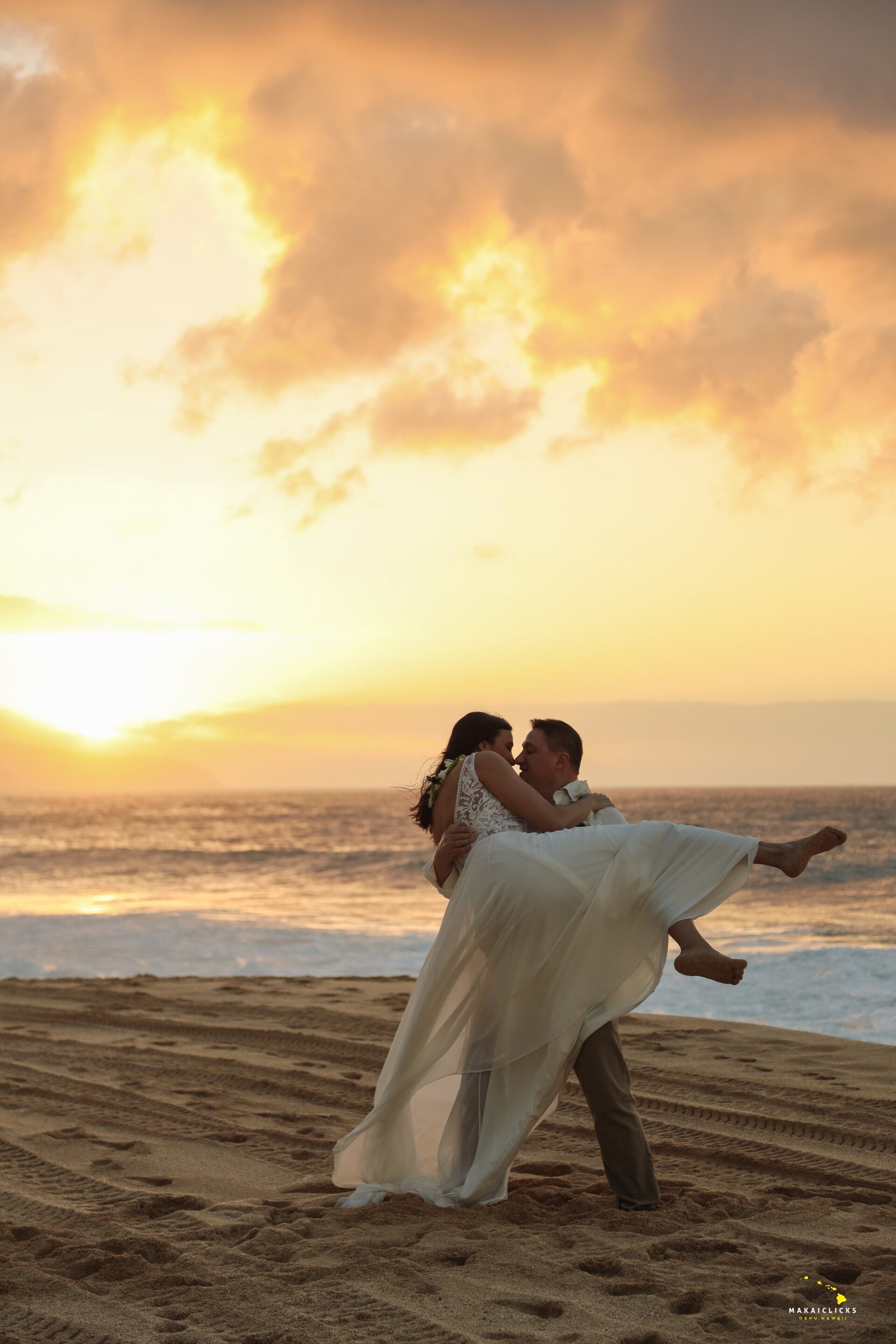 Highlights of this dreamy sunset wedding on the North Shore of Oahu, Hawaii.